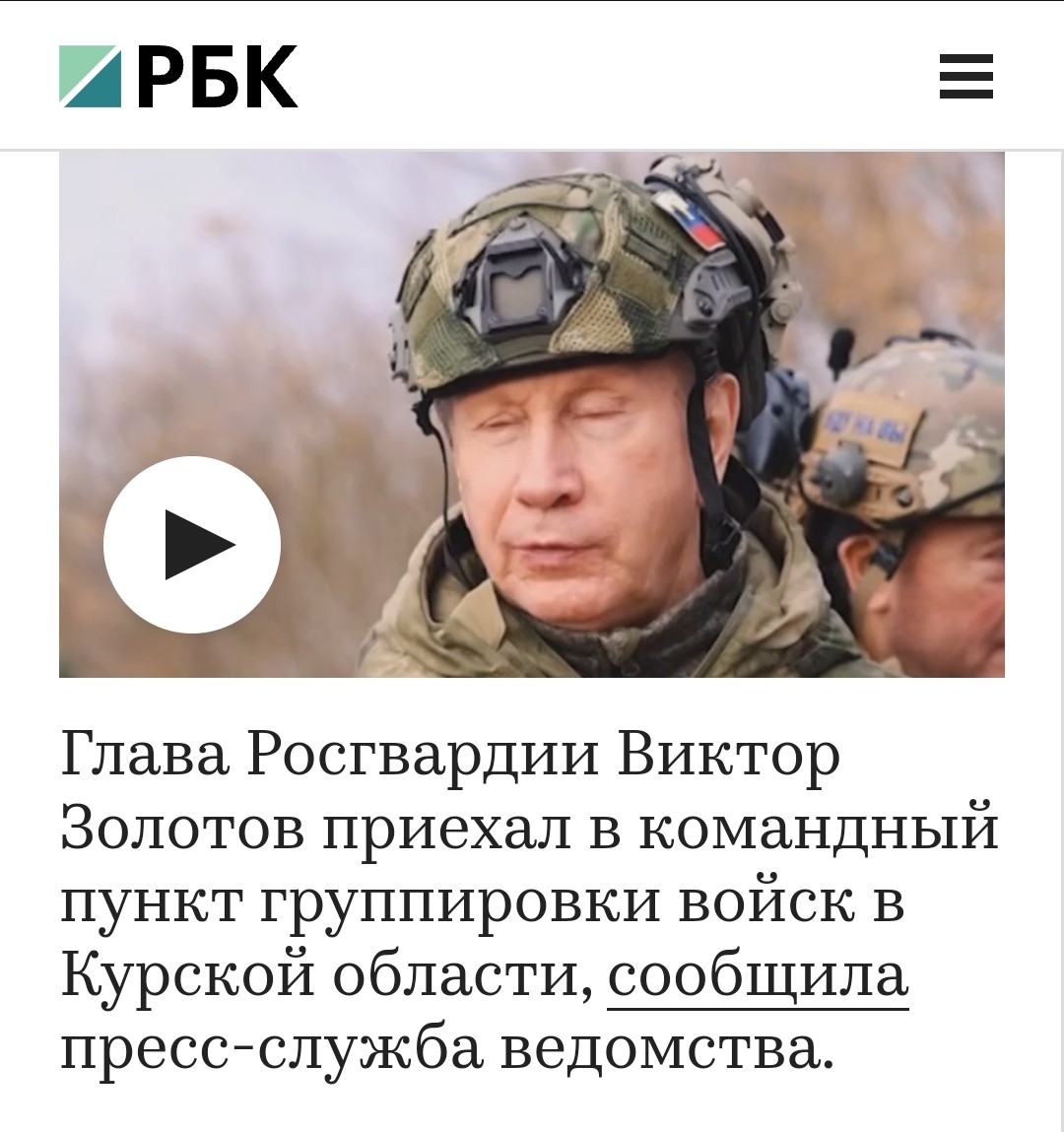 Тема Росгвардии нераскрыта, Золотов так вообще из медиа выпал - еле отыскал заметку месячной давности (про ошвободителя курской волости).