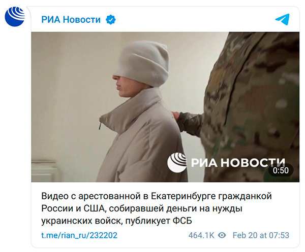 Издание "Медиазона" выяснила, кто она такая и что ей инкриминируют. Задержали за "мелкое хулиганство", после чего стали шить госизмену за "сборы денежных средств в интересах одной из украинских организаций, которые впоследствии направлялись на приобретение Вооруженными силами Украины предметов тактической медицины, экипировки, средств поражения и боеприпасов", которые заключались в переводе $51,8 с ее американского счета украинскому фонду. Информации об этом переводе от американского банка у них быть не могло - США не делится такими данными с РФ.