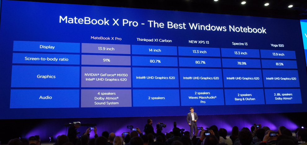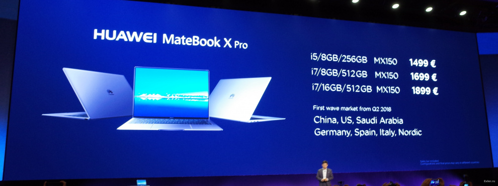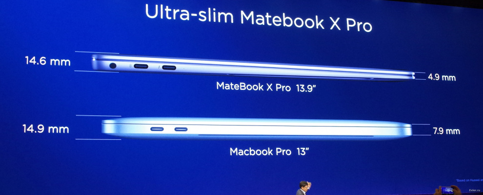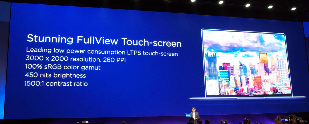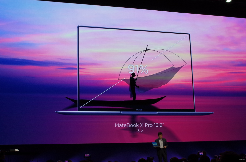 В этот раз все было, в общем-то, повеселее. Потому что представили полноценный ноутбук, причем довольно интересный - Huawei MateBook X Pro. Первый в мире, как сказал CEO Ричард Ю, который обычно проводит все презентации компании, полнообзорный ноутбук с сенсорным экраном.