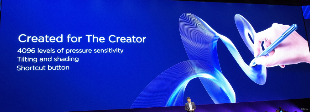 У планшета есть перо, различает 4096 трепещущих видов нажатий.