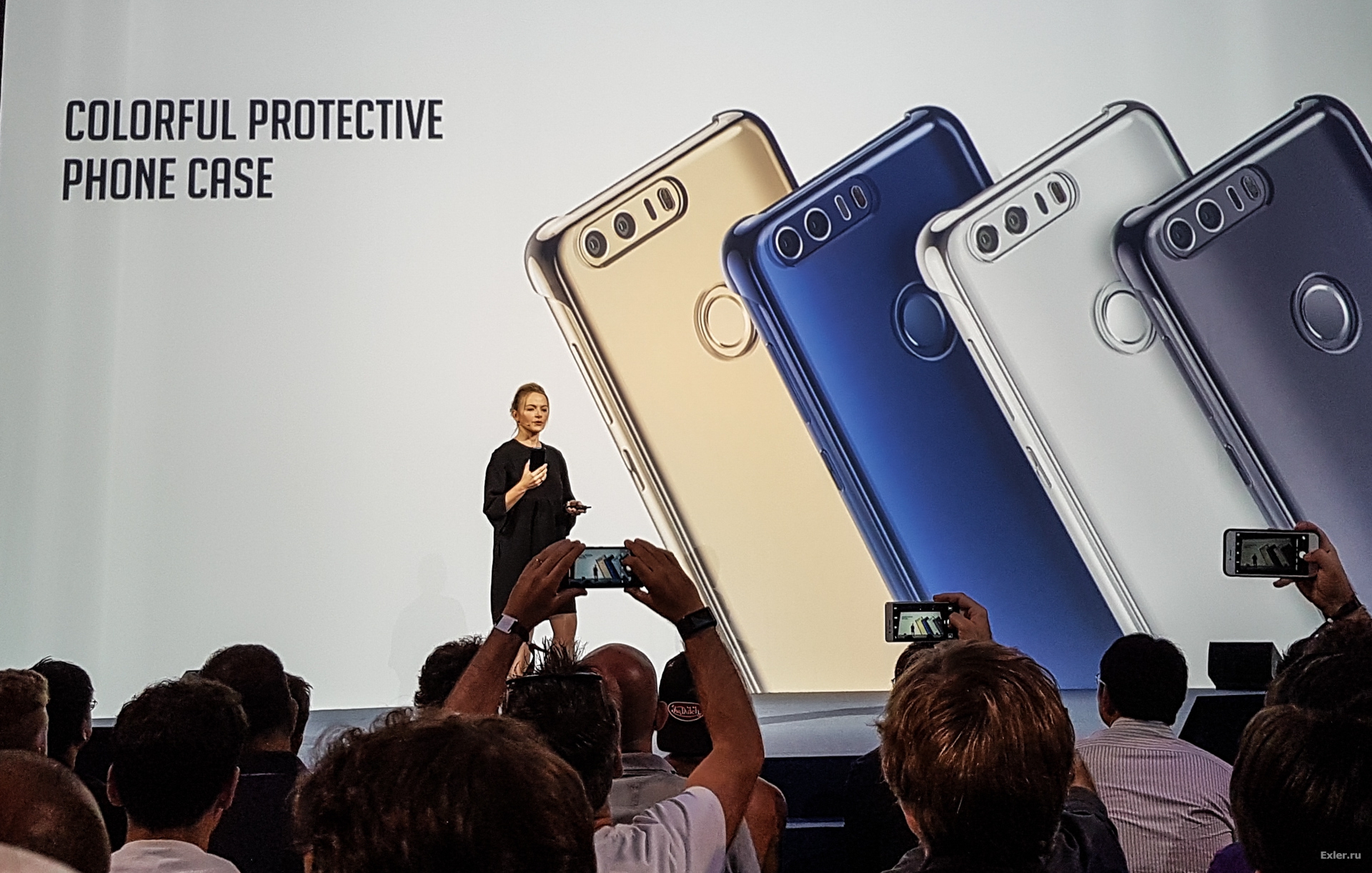 Она уже представляла непосредственно Honor 8. Рассказывала о подходе к дизайну - действительно впечатляющему, особенно у варианта цвета "синий сапфир". Нам рассказали, что в Honor оказались несколько не готовы к очень высокому спросу именно на данную расцветку, поэтому они сейчас активно наращивают производство "синего сапфира", потому что спрос пока опережает предложение.