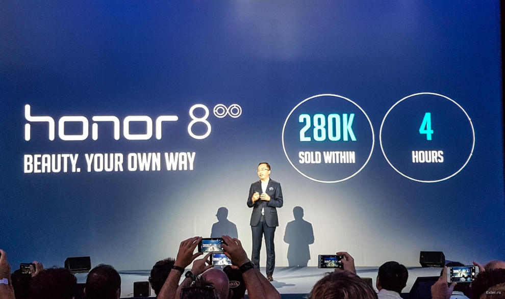 Джордж привел некоторую статистику продаж бренда Honor, который появился в 2013 году как подразделение компании Huawei. В 2014 году было продано 20 миллионов смартфонов Honor, в 2015 - уже 40 миллионов. И сейчас Honor продвигается уже как совершенно самостоятельный бренд, хотя его пуповинная связь с Huawei для экспертов и журналистов очевидна.