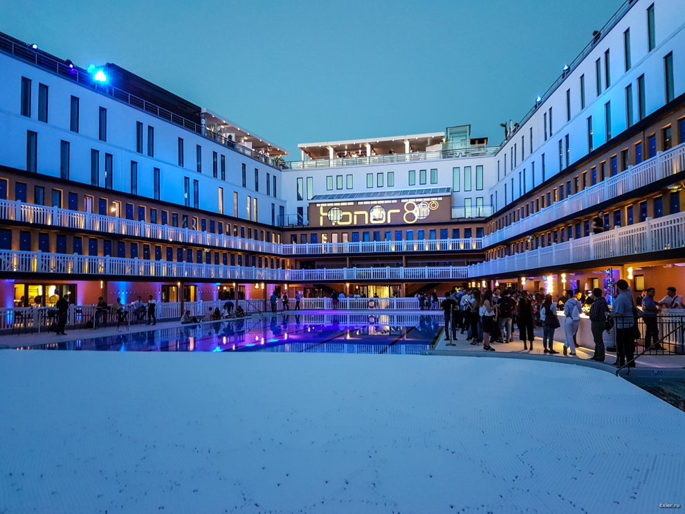 Вот так выглядит внутренний двор отеля, представляющий собой один огромный бассейн. И тут я понял, что в качестве презентации Honor 8 будет водная феерия.