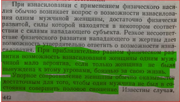 Ну, имеется в виду, что если жертва не опасается за свою жизнь, то, условно говоря, изнасиловать женщину, которая на 20 сантиметров ниже и на 30 килограмм легче, скорее всего, очень сложно. А если человеку угрожают или предварительно избили, например, то и физическое развитие не так важно