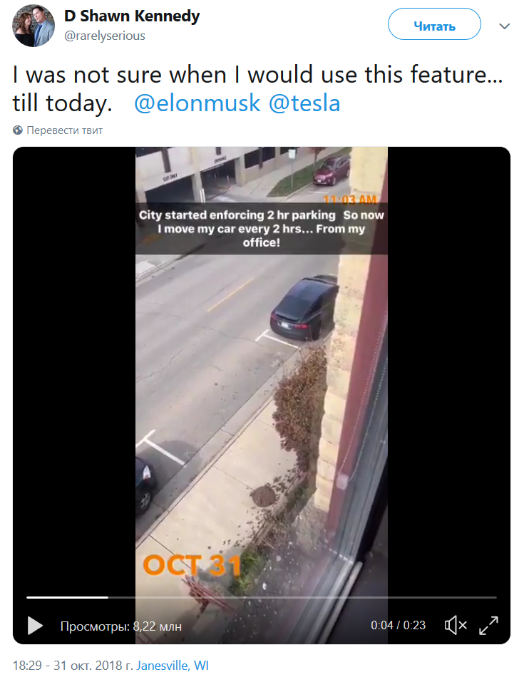 У Шона Кеннеди в городе ввели правило, по которому парковка в центре города свыше двух часов становится платной. Но у Шона - "Тесла", поэтому он ее просто каждые два часа переставляет на соседнее место через телефонное приложение.