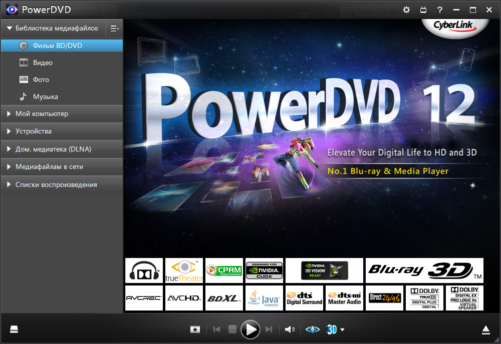 Для просмотров фильмов формата DVD (и с определенного времени Blu-ray) я уже сто лет как использую программу Cyberlink PowerDVD. Пробовал всякие другие плееры - не пошли, мне этот нравится больше остальных. Покупаю я его чуть ли ни с третьей версии.