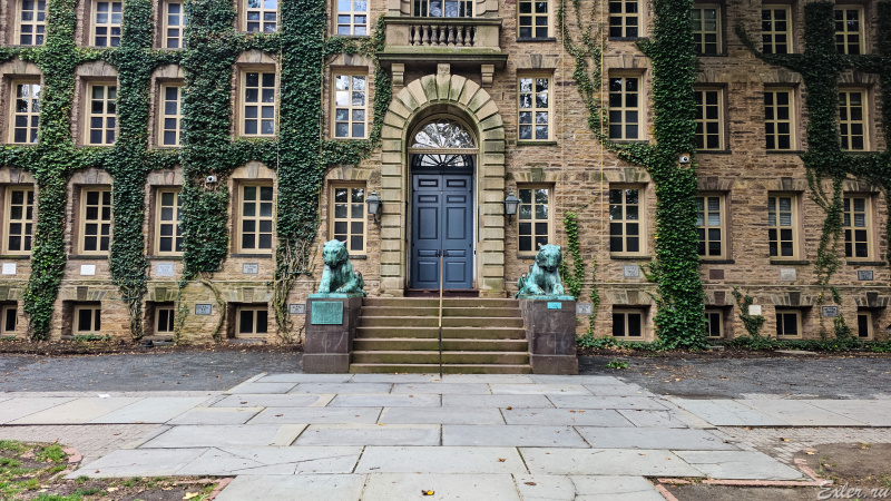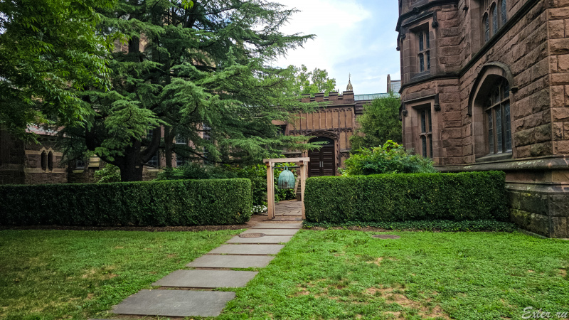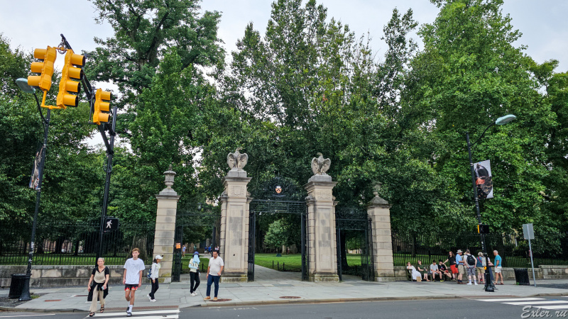 Ну и вот вход в кампус университета Принстона. Я вообще ожидал, что туда без палестинского флага или хотя бы без арафатки не пускают, но оказалось, что нет, пускают.