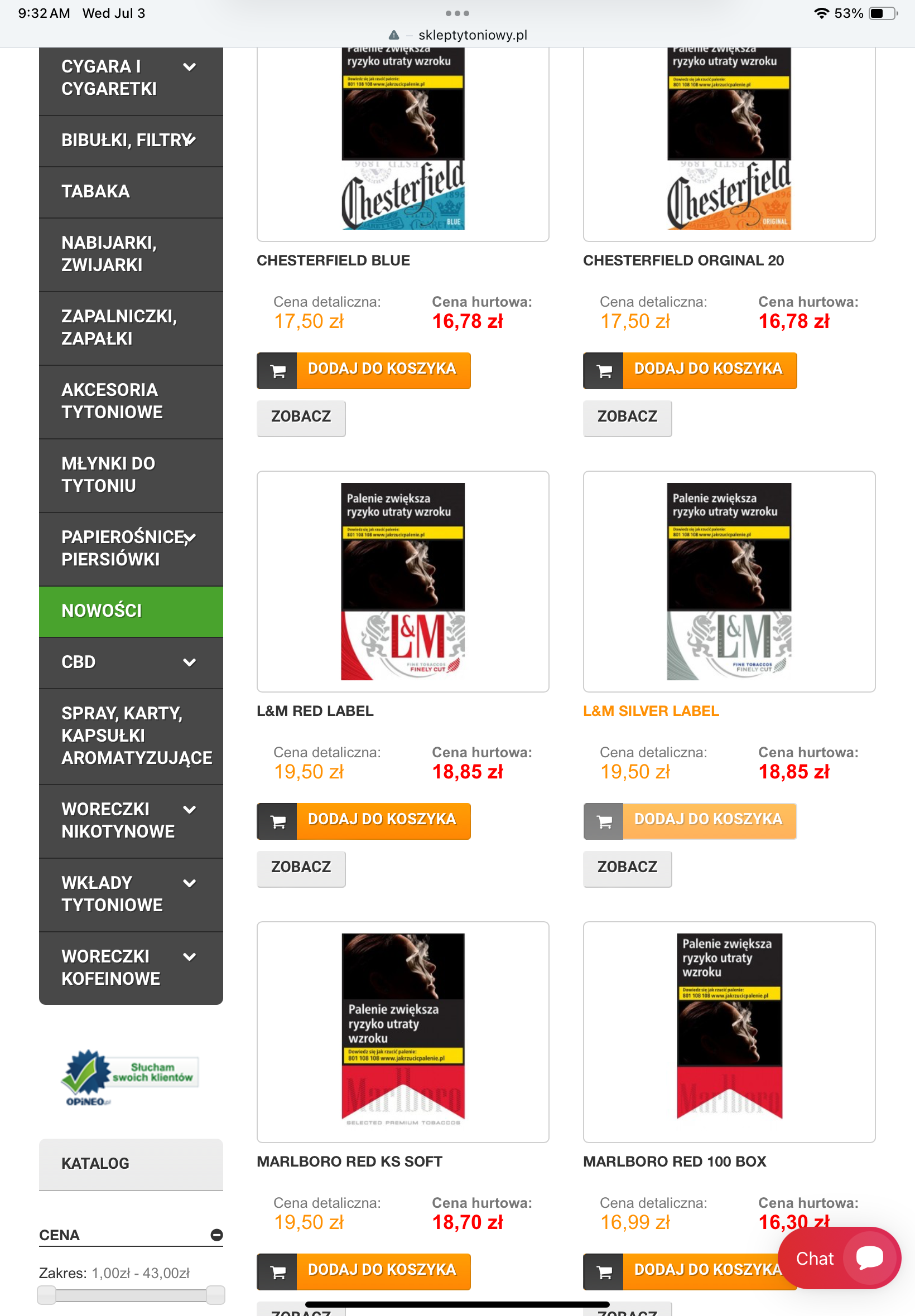 Не знаю за сигареты, чесслово, ибо не курю. Вот тут есть интернет-магазин: www.skleptytoniowy.pl Насколько там актуальные цены, не знаю. Попаду в магазин - посмотрю, если не забуду. Хотя "магазин" у нас "sklep", а "magazyn" - "склад" 😄