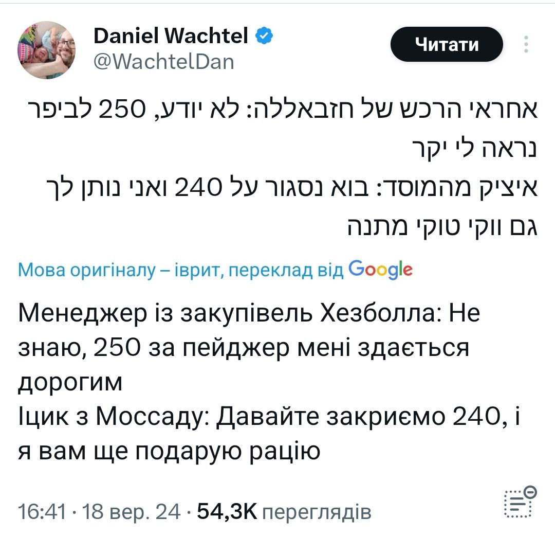 Ну и "молодцы" - просто вообще евреи или именно работники Моссад? Вот если сейчас расследование покажет, что партия пейджеров была продана не именно Хезболле, а просто продана в Ливан дистрибьютору, который эти пейджеры в Ливане продает на широком рынке (не исключая, в том числе, Хезболле). Тогда должны ли, по вашему, "бармалеи" и "ослоебы" свои претензии также предъявлять просто любому еврею, до которого дотянутся? Может ли быть так, что в Ливане пейджерами пользуются не только "бармалеи" и "ослоебы"? В этом случае, должны ли у всех ливанцев возникнуть претензии ко всем евреям?