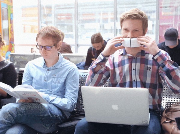 В чем идея? В том, чтобы обеспечить приватность разговора в ситуации, когда вокруг немало жадных до информации ушей. Выглядит это как-то так.
