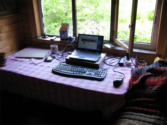 Рабочее место уже вчерне оборудовал, могу похвалиться. Пусть вас не смущает окружающая показная роскошь. Просто я всегда умел хорошо устроиться.