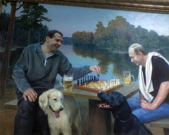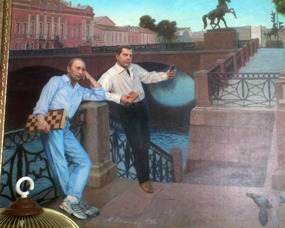 Висит в какой-то клинике - там и сфотографировано. Картины, кстати, реально юморные: пивасик рядом с шахматами, Дима фотографирует себя айфоном - художник оказался с хорошей иронией.