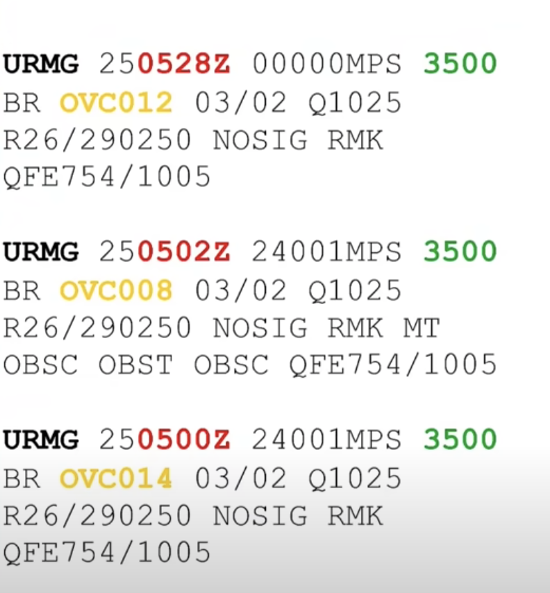 На фото зеленым видимость, желтым граница облаков (минимум 800 футов).