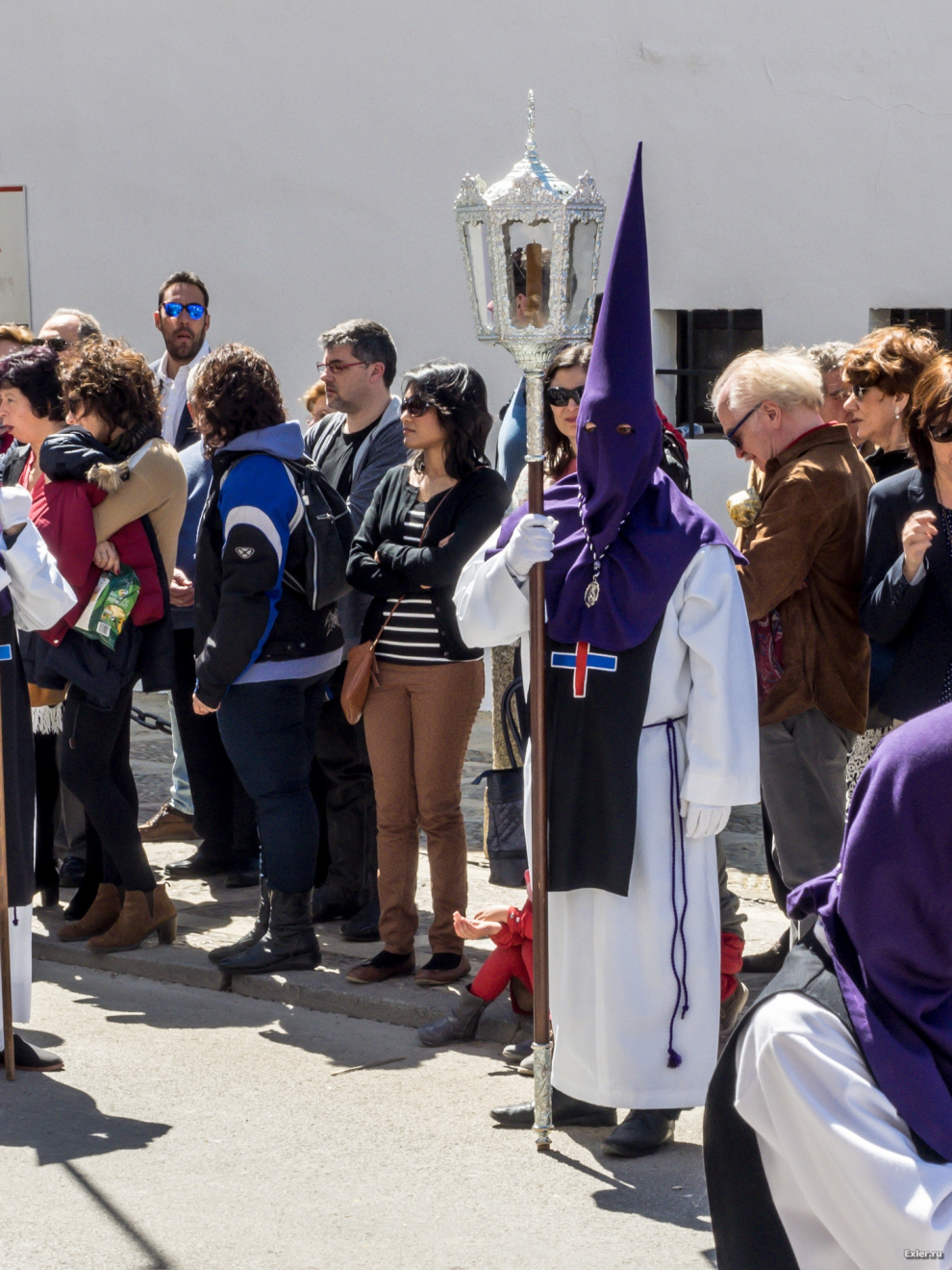 А это, как я понял, мэр города с женой. У женщин традиционный наряд для этих процесиий - черное платье с кружевами, черные туфли и обязательно мантилья - накидка на голове. В обычной жизни мантилью не носят, надевают только для Святой недели.