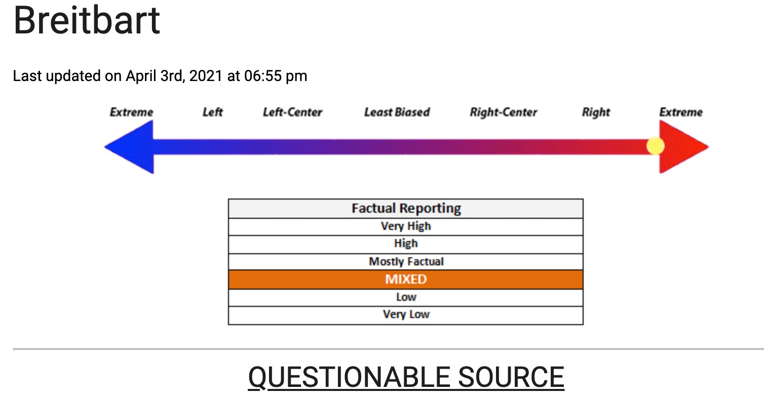 Помимо НЙТ, в той же когорте Рейтерс, АП, ВоллСтрит, WP и пр. -- надежные источники. Которые поймали Никсона, Вьетнамские бумаги, Панамские счета и пр. Брайтбарт гордо справа, один. Пpавее Дейли мейл и Fox.