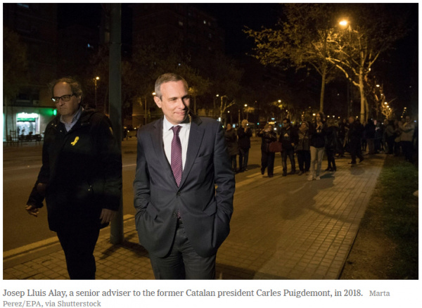 В Москве эмиссар Хосеп Луис Алай, старший советник бывшего президента Каталонии Карлеса Пучдемона, встретился с нынешними российскими чиновниками, бывшими офицерами разведки и внуком начальника шпионской службы КГБ. Цель, согласно докладу европейской разведки, который был рассмотрен The New York Times, заключалась в том, чтобы заручиться помощью России в отделении Каталонии от остальной части Испании.