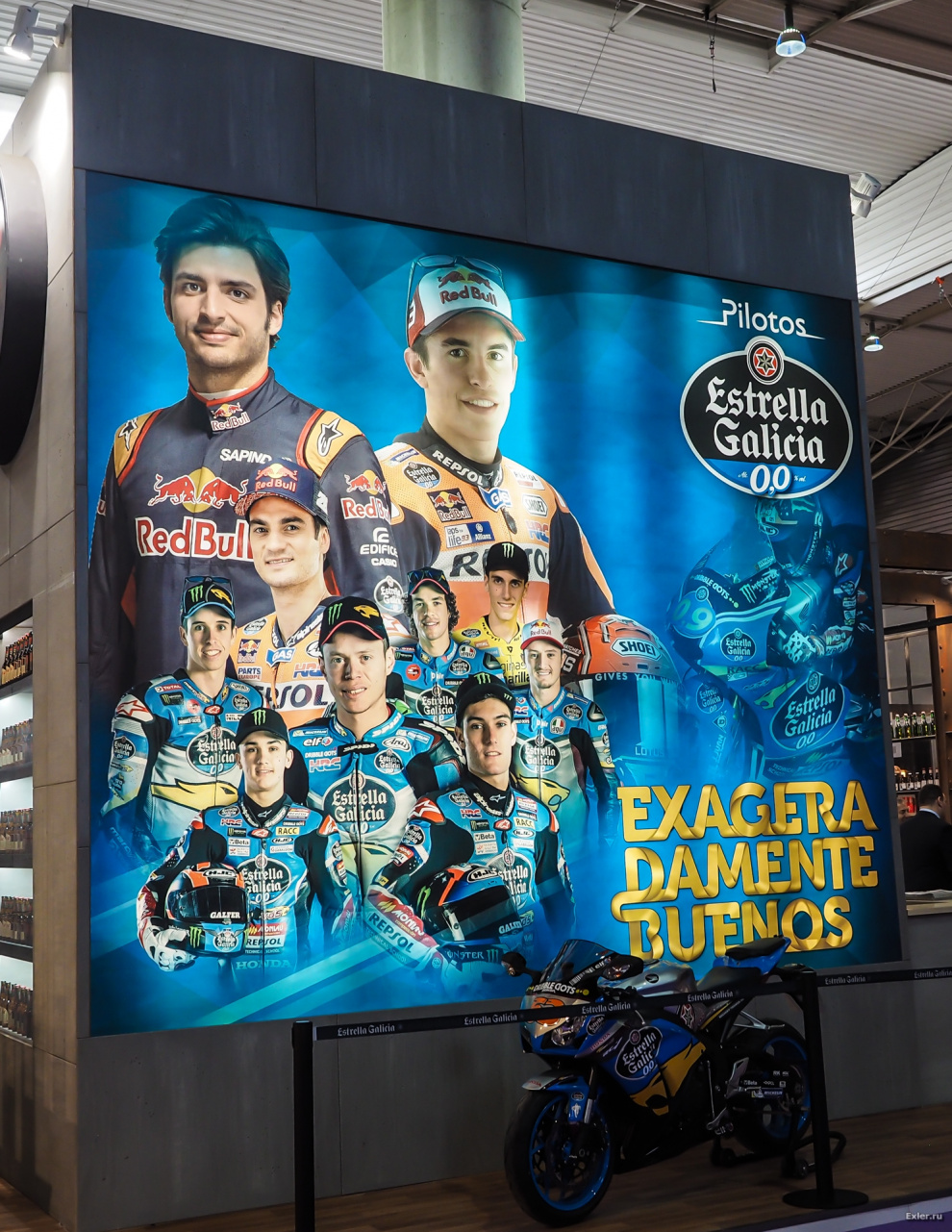Estrella (произносится как "Эстрейя") - очень популярное пиво в Испании. (Да и не только в Испании.) Есть куча самых разнообразных сортов этой марки, оно много где производится. На выставке рекламировалась галисийская мотоциклетная "Эстрейя".