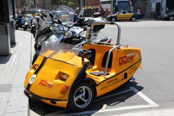 Вот такой экскурсионный автомобильчик можно арендовать и раскатывать на нем по Барселоне.