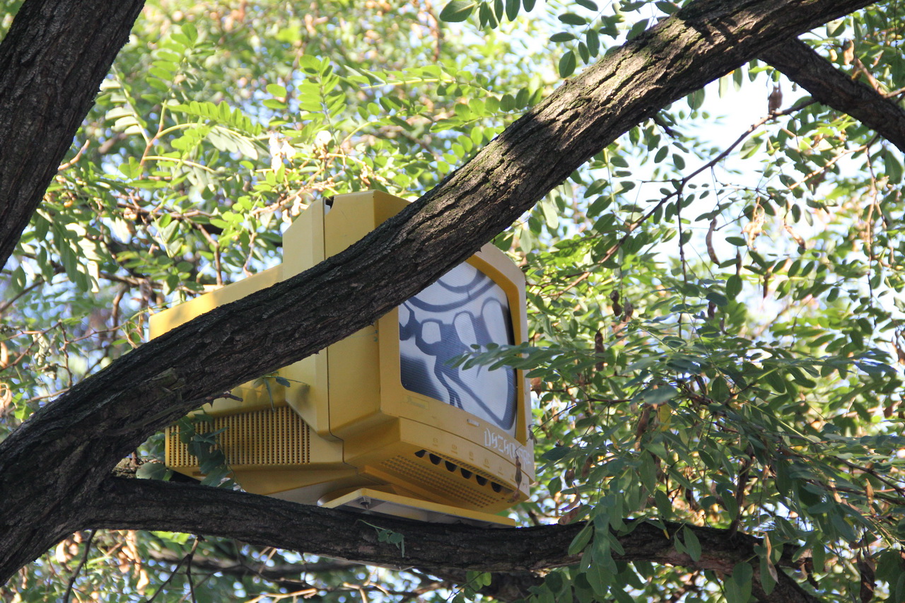 Деревья парка оккупировали задорные мониторы. Однако недолго им щебетать - через пару месяцев начнутся холода, и они полетят на зиму в страны Третьего мира.