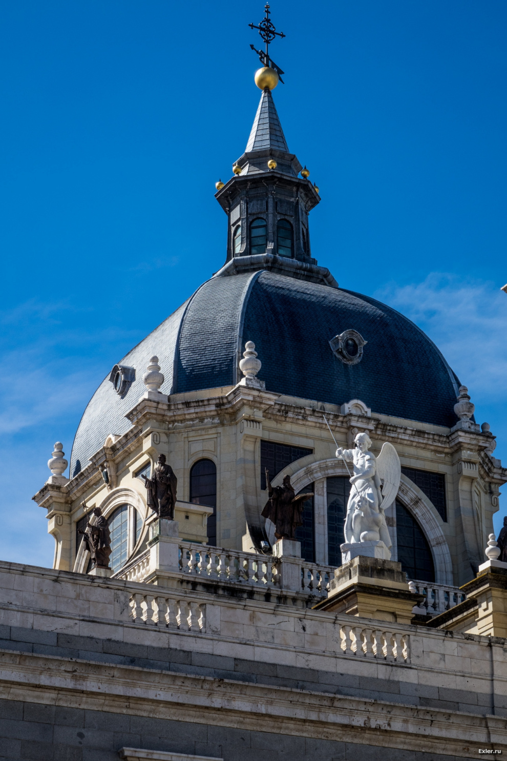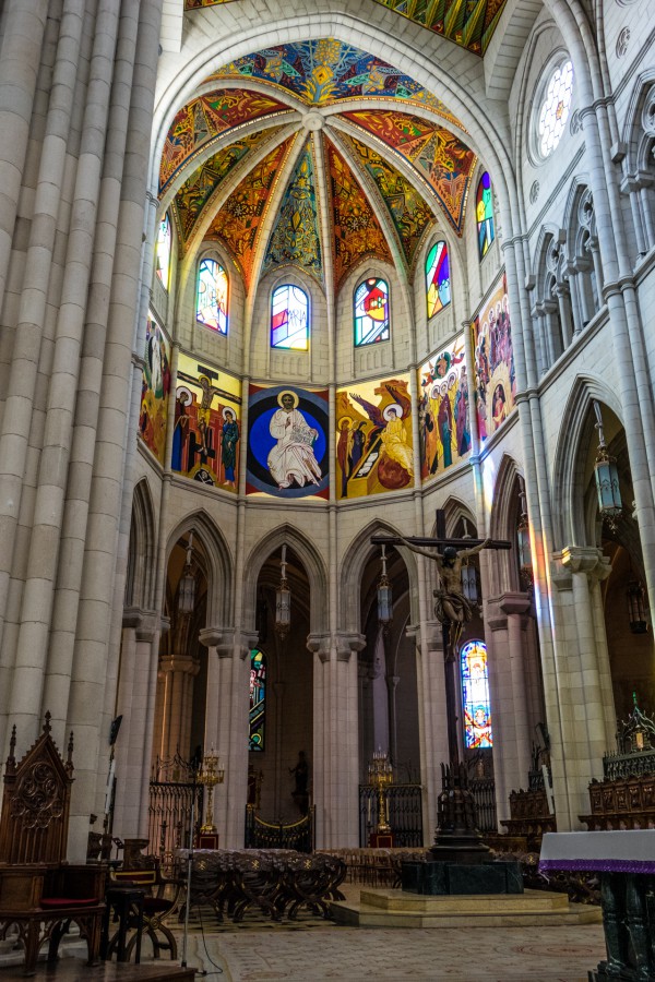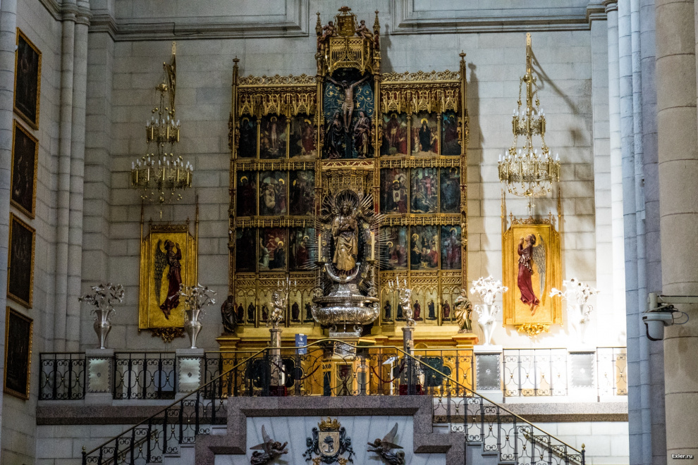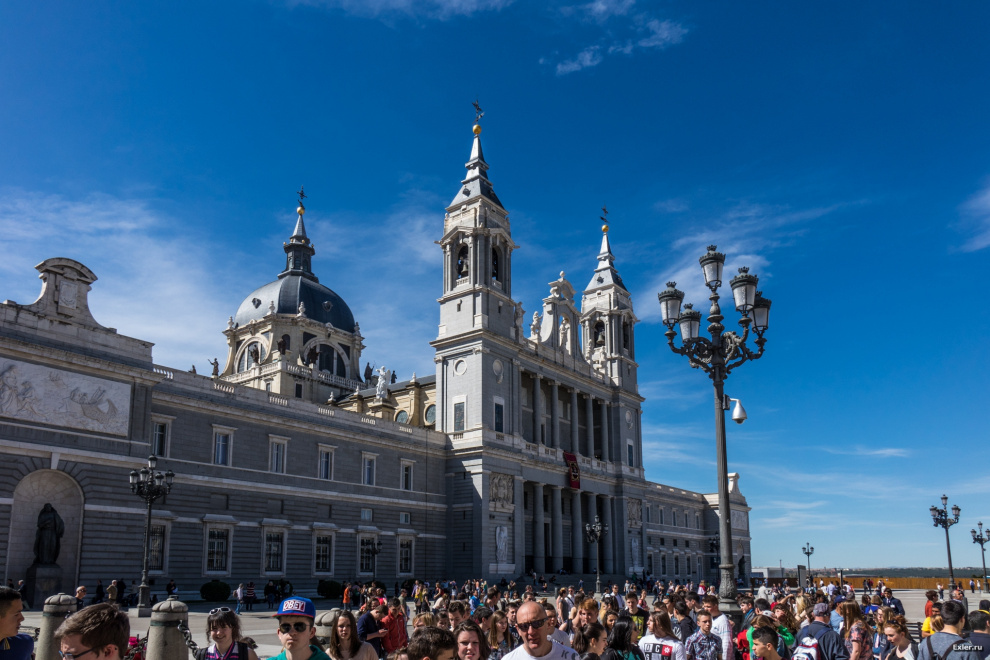 Напротив королевского дворца находится кафедральный собор Собор Санта-Мария-ла-Реаль-де-ла-Альмудена. Начали строить собор в 1884 году, а закончили - только в 1993 году. Тогда же, в 1993 году, собор приехал освящать Иоанн-Павел II.