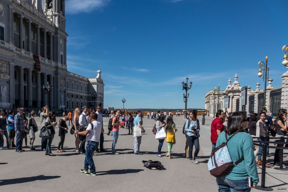 Напротив собора стоит длинная очередь в музеи королевского дворца. Очередь развлекает бойкий мужичок (вроде как румын), который на баяне исполняет "Хава-нагила", "Очи черные", "Когда в поход мы отправлялись - слезами девки заливались" и прочие народные испанские песни.