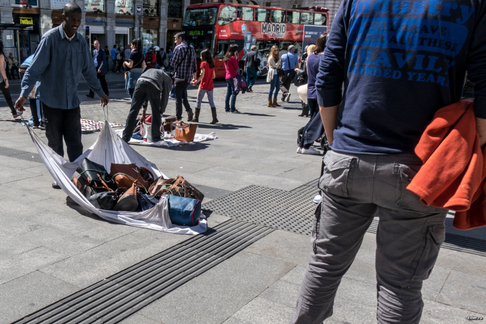Сыны Африки, которые по всей Европе торгуют всяким барахлом. Переносят они это дело в больших узлах, мгновенно раскладываются и так же мгновенно собираются и уходят, когда их гоняет полис.