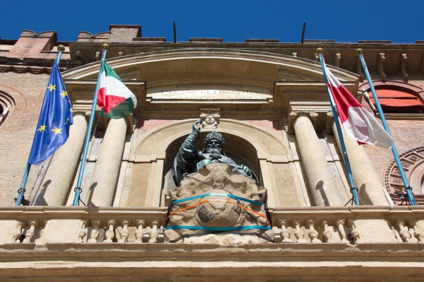 Невинная хитрость болонцев. Скульптура изображает папу Григория, однако надпись гласит, что это святой - покровитель города. Надпись сделали перед визитом в город Наполена - он не любил пап и мог прийти в ярость, увидев изображение папы. Хитрость удалась, Наполеон ничего не заметил.