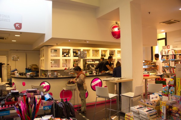 Итальянцы - они такие: даже в книжном не могут без кофе и выпивки.