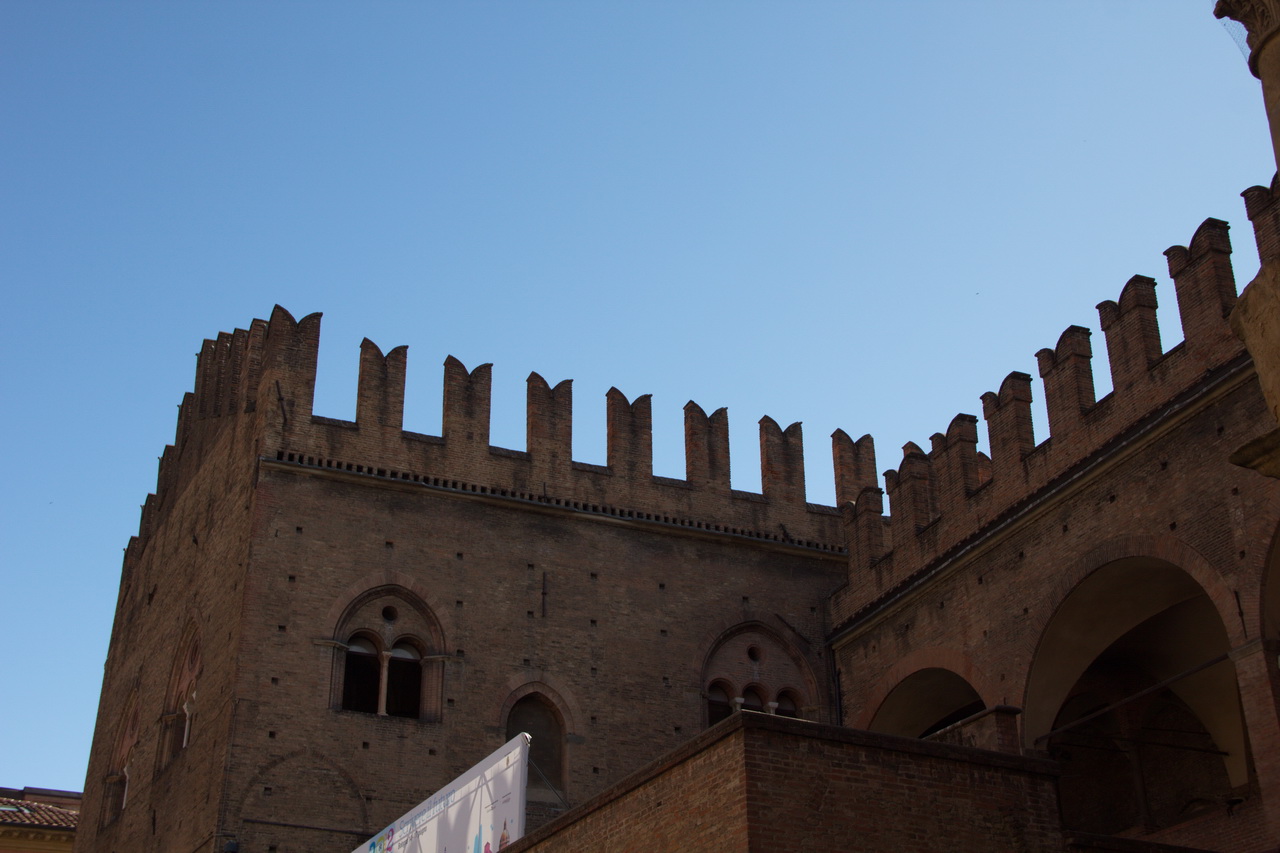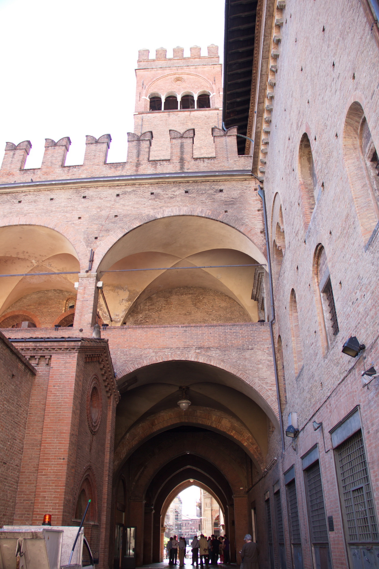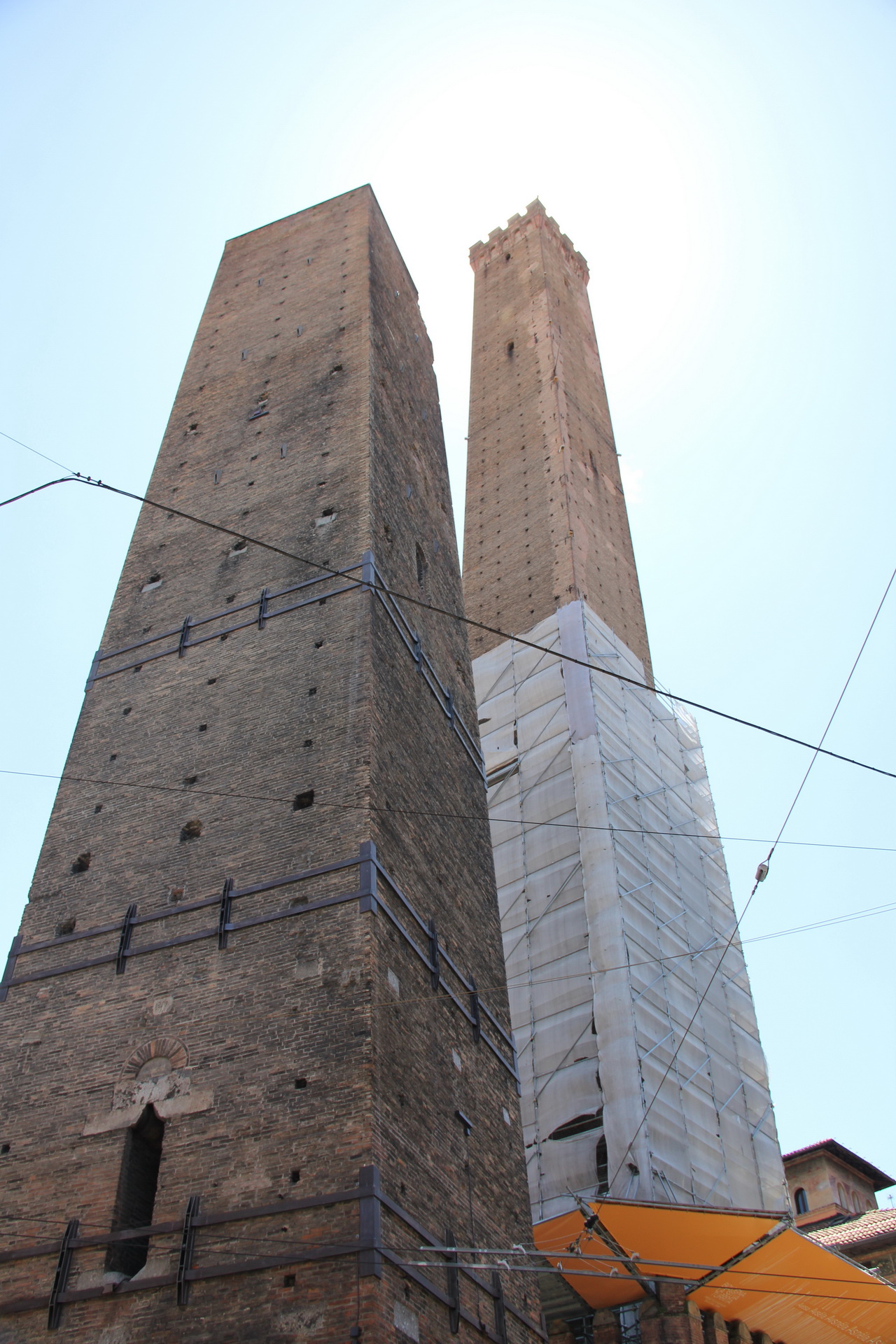 Две башни - символ Болоньи. Подняться можно - 485 ступенек. Мы вместо этого пошли обедать.