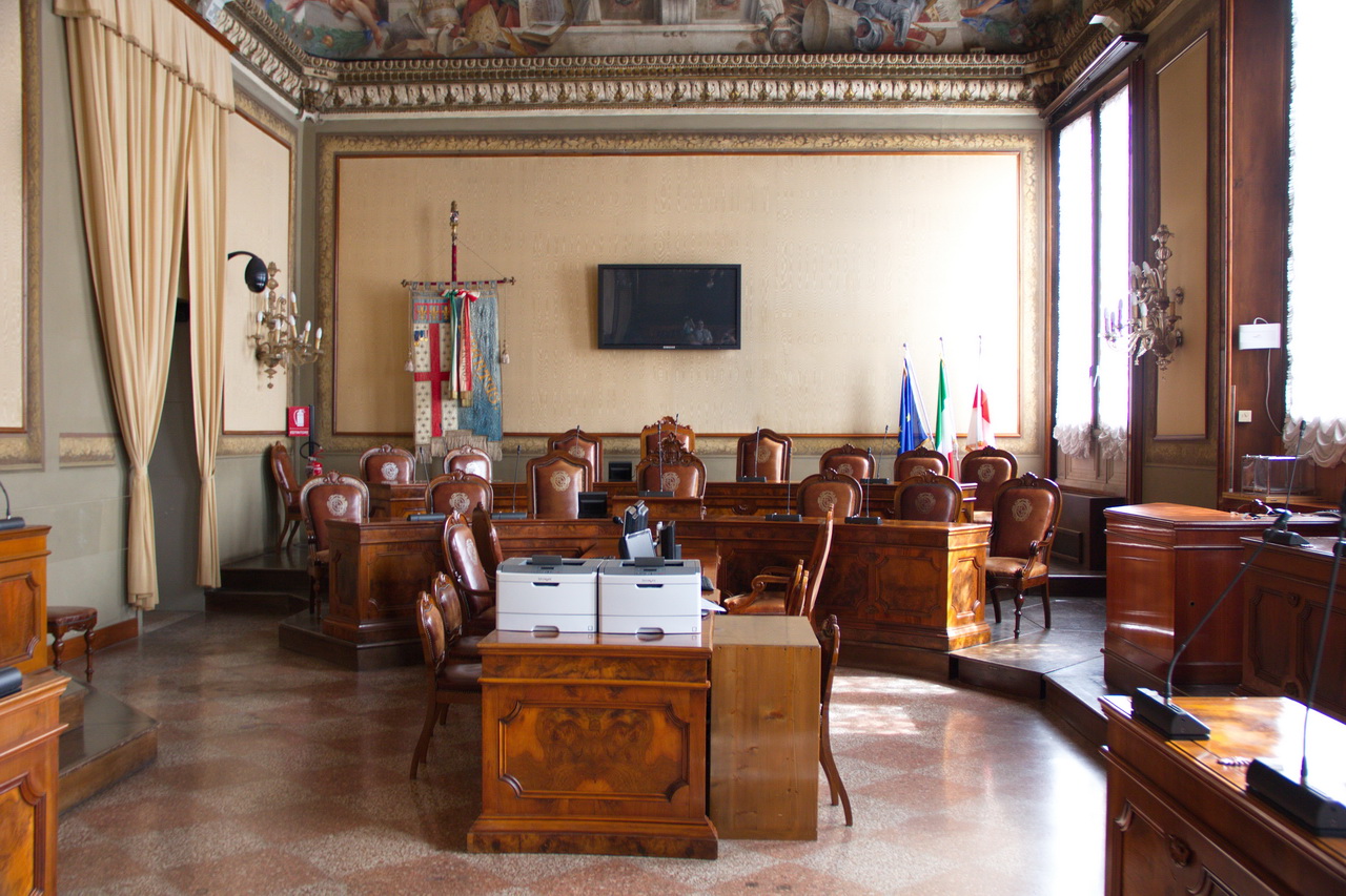 Зал заседаний городского совета. Туда пуcкают и даже разрешают посидеть в креслах, представить себя мэром.