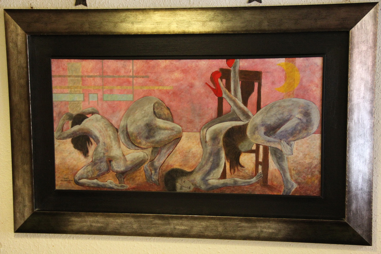 Не чуждаются болонцы и высокого искусста. Вот эта картина называется "Эк их плющит". Она висела в одном из ресторанчиков.