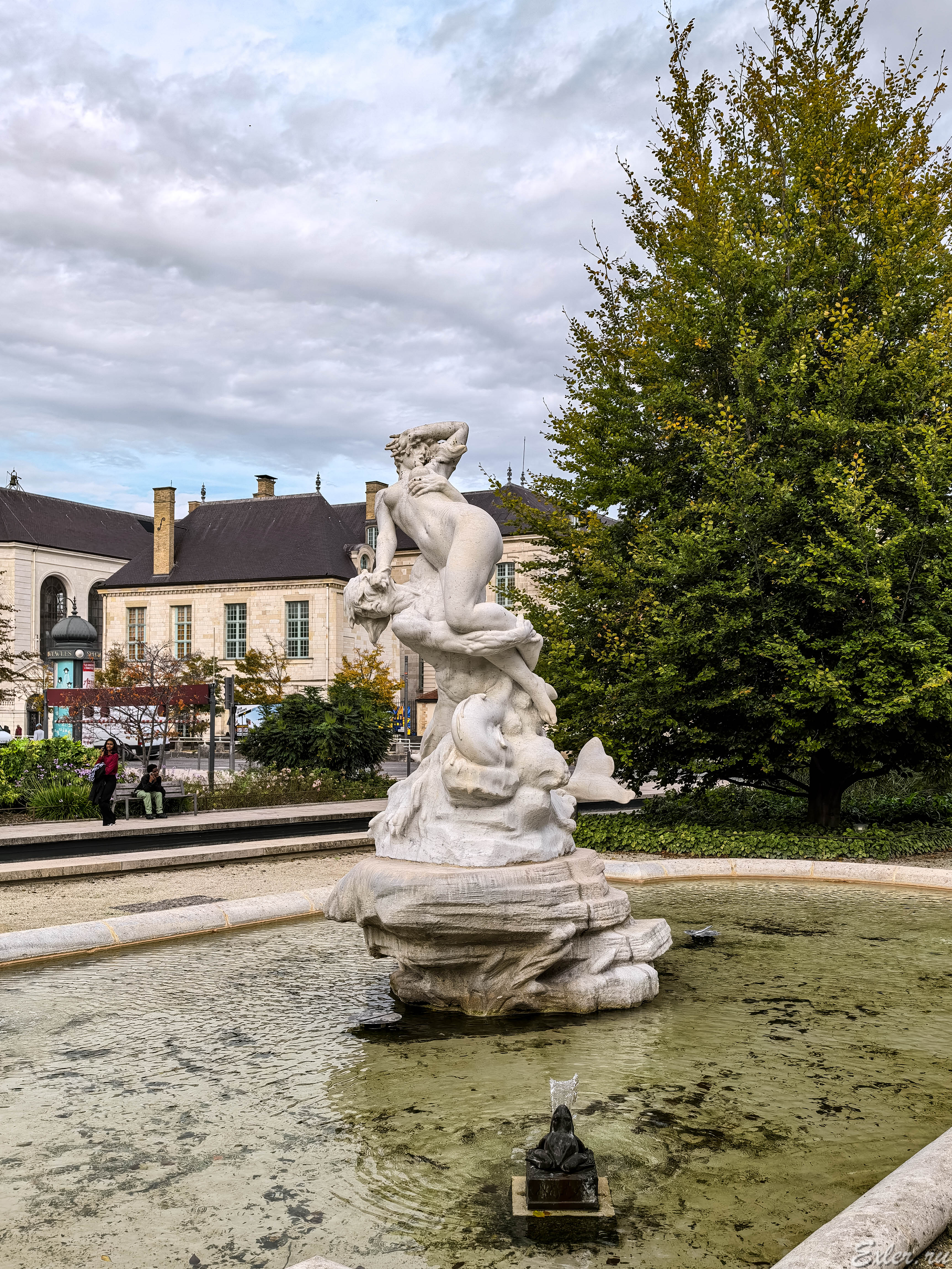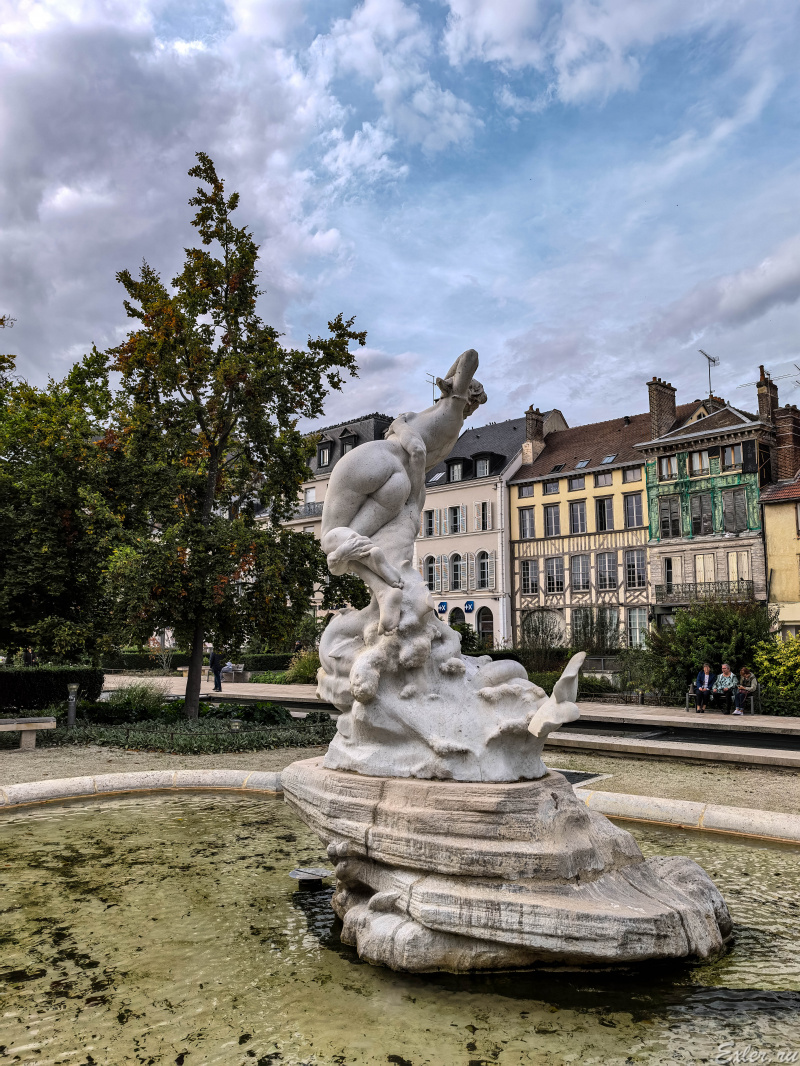 Фонтан с памятником, на котором явно похищают какую-то нимфу.