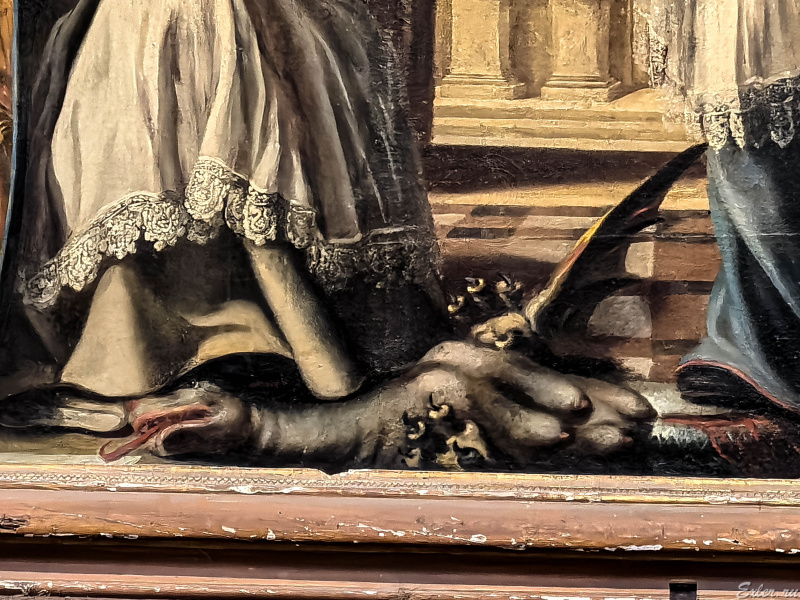 Поверженный дракон на картине имеет то ли четыре груди, то ли четыре яичка - мнения ученых на этот счет расходятся.