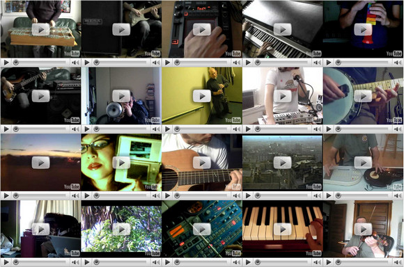 Проект wwww.inbflat.net. Двадцать музыкальных видеороликов с Youtube. Люди играют на совершенно различных инструментах. Вы можете запускать их в произвольной последовательности и в совершенно произвольное время - все равно они будут играть вместе. Очень забавно.