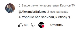 И последнее. Под тем роликом в закрепе появился Александр Балунов, басист группы на тот момент, участник т.н. "золотого состава" с очень ироничным комментарием (см. скриншот). 😄