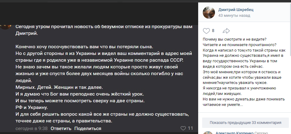 Дмиитрия жалко, потерять своего ребёнка это всегда трагедия. Но учитывая чего он постил до смерти своего сына можно предположить что это некая карма. Ну и любопытно поменял ли он свой взгляд по поводу этой войны.