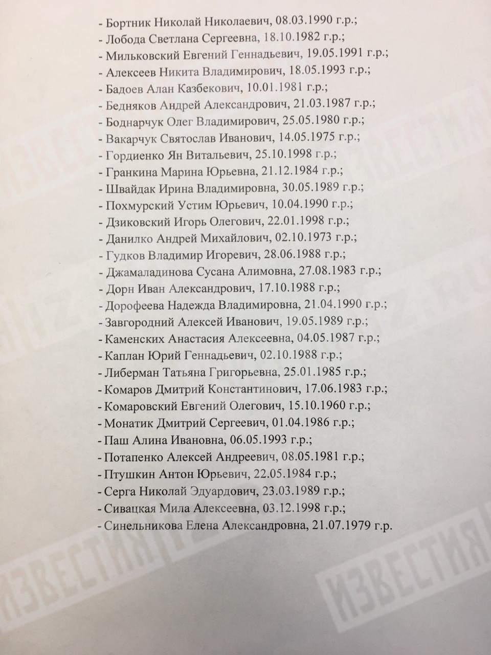 В перечень вошел 31 человек. В их числе оказались телеведущие Дмитрий Комаров («Мир Наизнанку»), Николай Серга («Орел и решка»), Андрей Бедняков («Орел и решка»), музыканты Алексей Потапенко и Анастасия Каменских, Светлана Лобода, Дмитрий Монатик, Святослав Вакарчук, Андрей Данилко, а также актриса Мила Савицкая («Последний богатырь»).