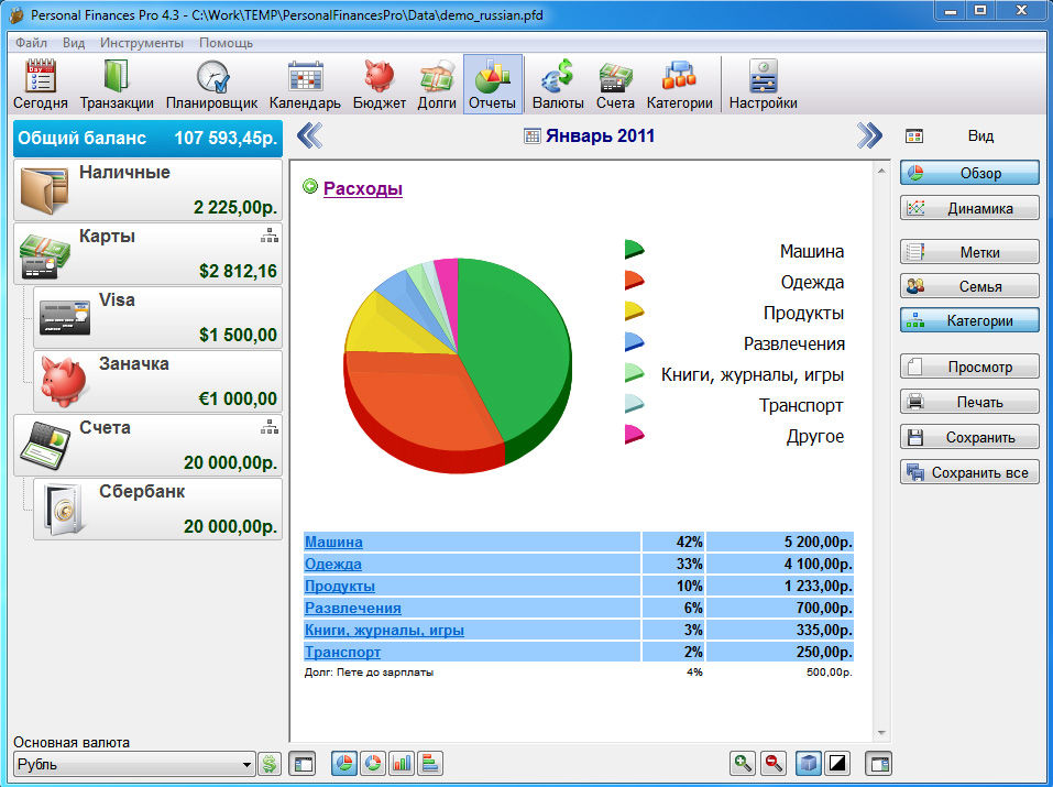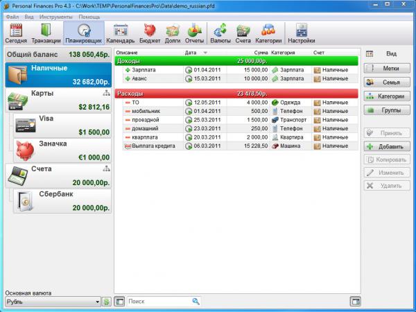 Простое и удобное управление семейным бюджетом - программа Personal Finances