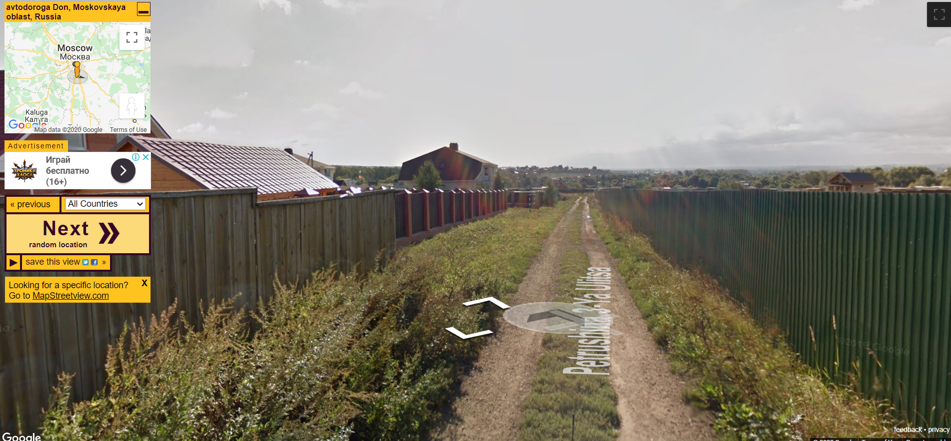 Отличный проект для ситуации, когда грустно, тоскливо и хочется повтыкать во что-нибудь созерцательное - Random Street View. При запуске сайт выдает совершенно произвольную точку земного шара в формате Google Street View, и там можно побродить. Вы можете выбирать конкретную страну, делиться найденным видом в социальных сетях. Также кнопкой можно листать точки и выбирать наиболее симпатичную.