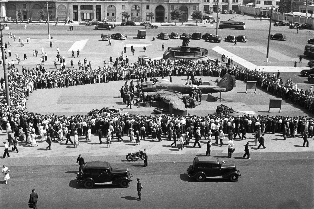 Москва, конец июля 1941 года. Жителям демонстрируют один из сбитых немецких бомбардировщиков.