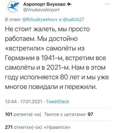 Ну со встречей самолётов в 41м не все так радужно было как кажется SMM-щикам Внуково.