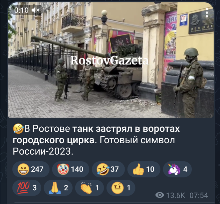 Таке враження, що частина регулярних військ рф вбиває своїх же, схоже частина військових підтримує прігожина. Поки незрозуміло що відбувається остаточно, це бійня.