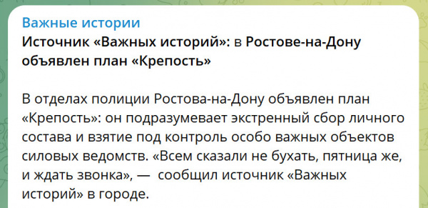 Так, вот теперь все очень серьезно: в Ростове официально потребовали не бухать по случаю пятницы. Это очень серьезное заявление, подчеркивающее крайнюю важность происходящего.