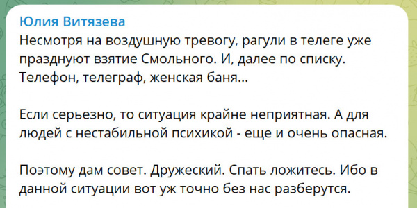 Но во всей этой истории не очень понятно - зачем о своих намерениях сообщать "ДО" наступления событий? Или это мода такая - запостить в телеграм, а потом ждать реакции. Это как если собраться грабить соседа, но перед этим позовнить в милицию и в подробностях все рассказать.