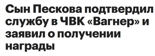 КСТАТИ! А у Пескова же сын воюет в Вагнере! Вот пусть и сообщит папашке актуальные новости.