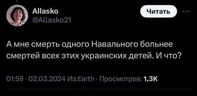 Сегодняшние похороны Навального в Москве переросли в митинги. Сообщается, что люди не хотели расходиться и скандировали "нет войне". На третий год десятилетней войны... Только смерть их лидера заставила выйти на улицы и хоть как-то заявить о своей позиции. Однако соль в том, что войны не хочет и Путин. Более того, он начал свое "СВО" именно с целью не допустить войну, как им и всей его конюшней не раз заявлялось. Поэтому лозунг "нет войне" не то что беззубый, он просто некорректный. Единственный актуальный лозунг друзей Украины сегодня может быть "Украина должна победить". А война... что война? Войну и так никто не хочет; кого этим удивить.
