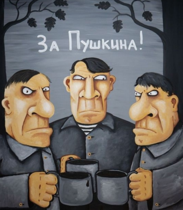 Кстати, попалась тут новость, что флажок с именно этим пингвиньим Пушкиным альпинист Кондрашкин собирается водрузить на высоте Чо-Ойю в Гималаях. Кондрашину, видите ли, больно видеть, как "отменяется русская культура", поэтому он собирается водрузить портрет Пушкина с пингвинами кисти Сафронова, чтобы прославить русскую культуру. Ну а что - слабоумие и отвага, дело такое! Пожелаем ему успеха.