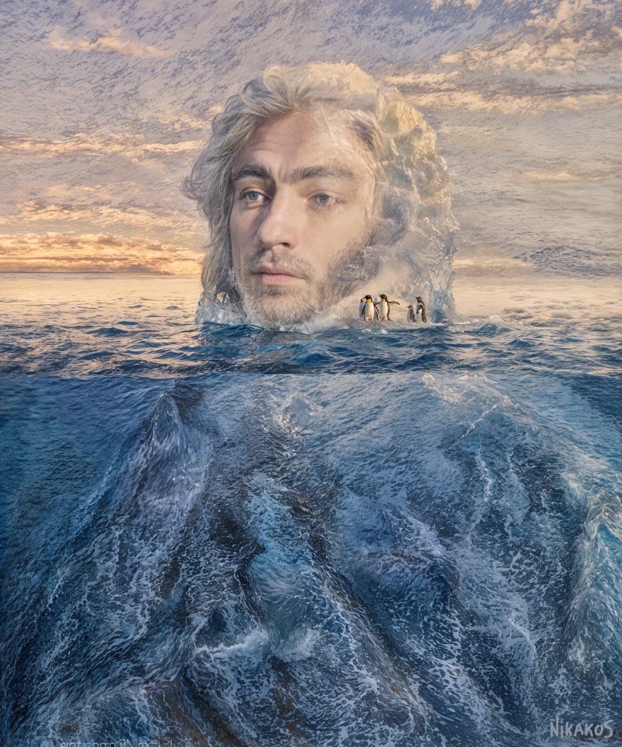 90% айсберга находится вне поля зрения наблюдателя. А что это значит? Что Пушкина-то мы по-настоящему и не знаем. Нам еще предстоит, по мнению великого, не побоюсь этого слова, художника, проникнуть в его творчество, оборванное на снегу (!!!) у Черной речки (!!!). И эту черно-белую гамму достойно оттеняют пингвины, один из которых, в меру своих пингвиньих возможностей, показывает