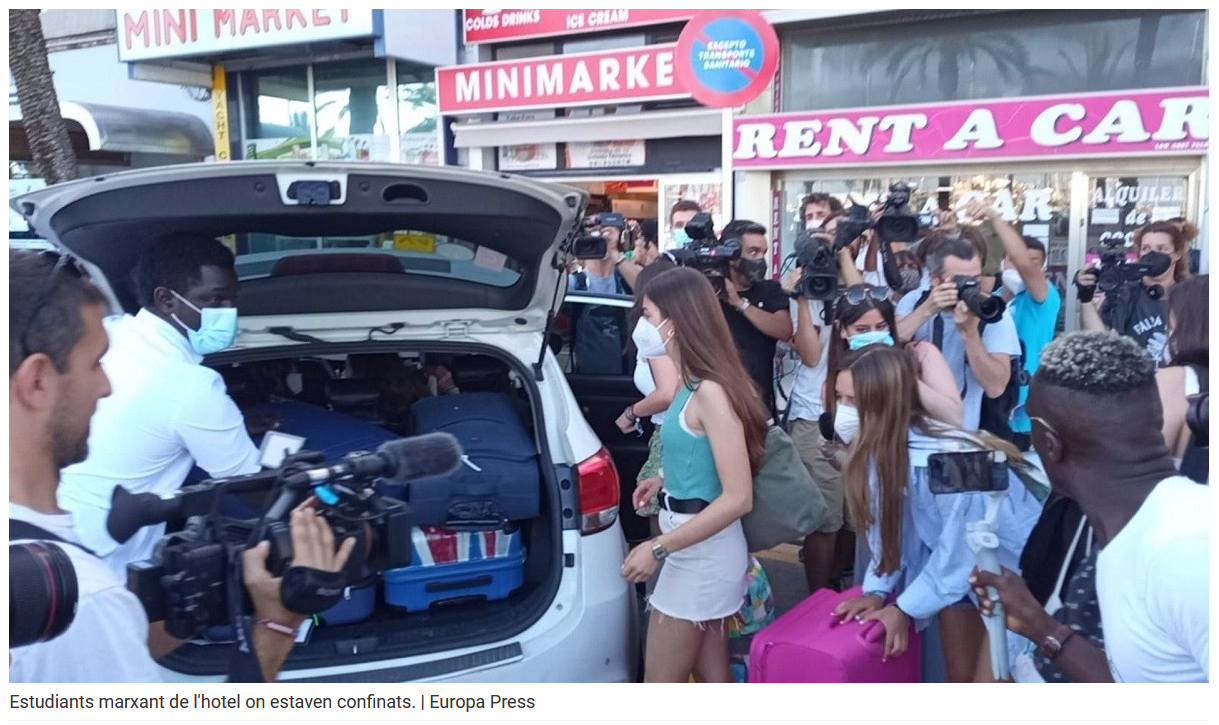 И тут возникла проблема: ни одна авиакомпания не соглашалась посадить студентов на свои самолеты, потому что они, мол, могли контактировать с зараженными. Идею предложить студентам добираться до материка вплавь в правительстве отвергли как неконструктивную (там 160 километров), ну и в результате правительству Балеарских островов пришлось зафрахтовать судно для того, чтобы перевезти студентов на материк. По решению суда студентам не придется платить ни за проживание в отеле, куда их поместили принудительно, ни за доставку на материк. При этом часть студентов уже покинула отель самостоятельно (их никто не имел права удерживать после постановления судьи) и отбыли в неизвестном направлении.