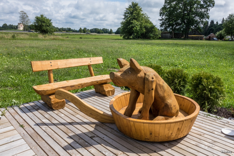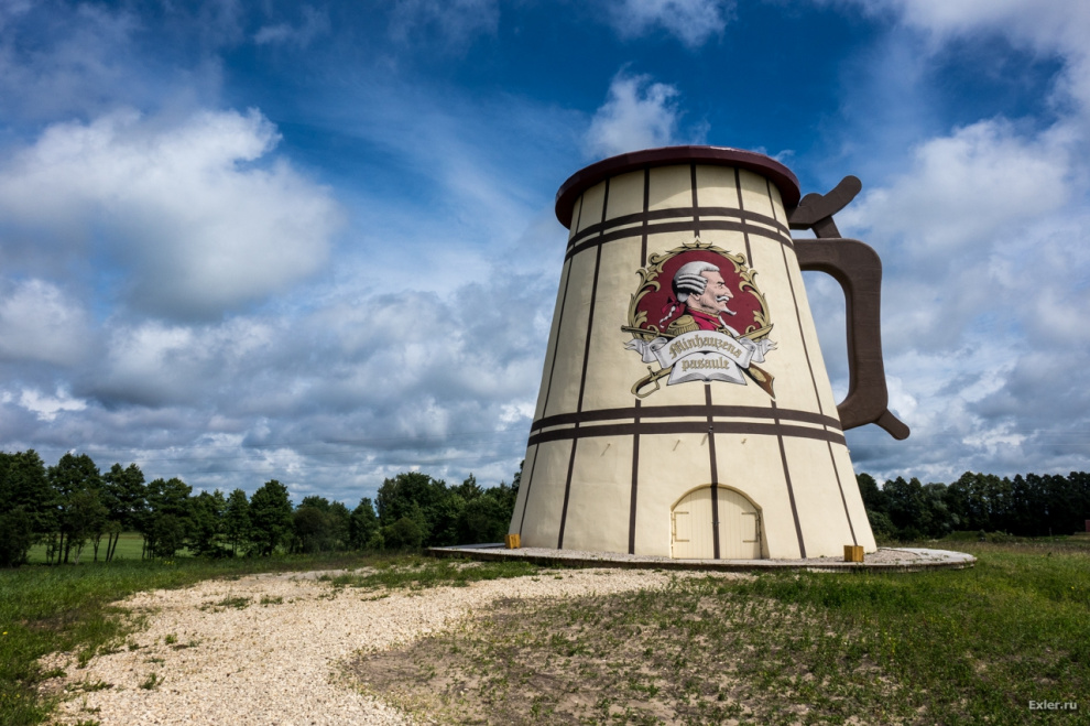 О "Музее Мюнхгаузена" я уже писал. Но это место интересно не только музеем-усадьбой. Там есть еще три развлечения: детская игровая площадка в виде здоровенного корабля, пятикилометровая туристическая тропа к морю (утверждается, что это чуть ли не лучшая туристическая тропа в Латвии), ну и Путь к Кружке, который вроде как с километр, но мой верный Fitbit показал, что там в одну сторону все два километра.